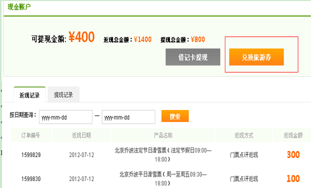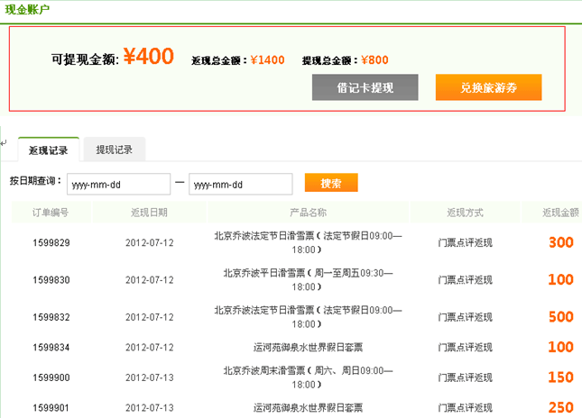 现金账户中的金额可用于旅游券方式提现、借记卡方式提现,后期途牛会继续扩大使用渠道。