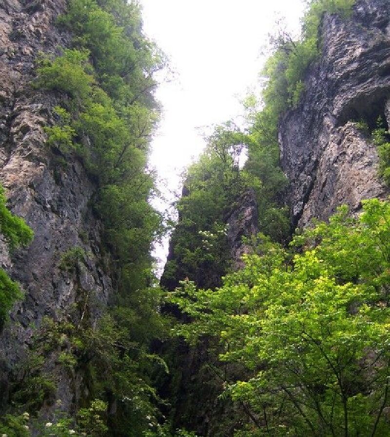 潭上筑有小桥,凭栏仰望,奇峰敞开洞口,幽静悠悠。从沟底登上洞口,只见原始植被似缨络飘垂。进入洞内,犹如走进相思梦中,魂灵象风。洞中有一通天闪亮的竖洞,谓之“天井洞”。