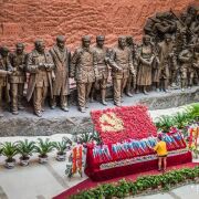 地图延安革命纪念馆位于延安市宝塔区西北延河东岸,在王家坪旧址的西边。这是一座大型革命历史纪念馆。延安革命纪念馆内展出有大量珍贵的历史文献、图表、照片等,系统反映了1935年10月到1948年3月期间,中央红军到达陕北后,建立起抗日民族统一战线、开展大生产运动、整风运动,直到最后取得解放战争胜利的光辉历程。