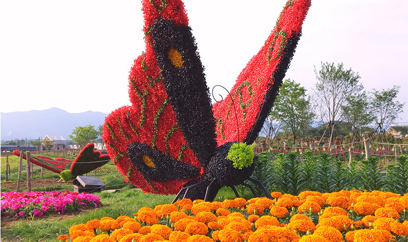荻浦花海欢乐世界五月主题是花艺,在这里能欣赏不同的花设计出来的不同的艺术品.