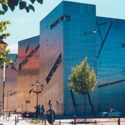 柏林犹太博物馆,也称柏林犹太(人)纪念馆、柏林犹太(人)历史博物馆等,位于德国首都柏林第五大道和92街交界处,现在已经成为柏林的代表性建筑物。该馆是欧洲最大的犹太人历史博物馆,其目的是要记录与展示犹太人在德国前后共约两千年的历史,包括德国纳粹迫害和屠杀犹太人的历史,而后者是展览中非常重要的组成部分,例如包括对于大屠杀(Holocaust)的追念,其展品以历史文物与生活记录为主,多达3900件,其中1600多件是原件。博物馆多边、曲折的锯齿造型像是建筑形式的匕首,为人们打开了时光隧道,全面展示了德国犹太人两千年的生活历程,他们对德国艺术、政治、科学和商业作出的卓越贡献,及在20世纪经历的那段悲惨历史。