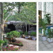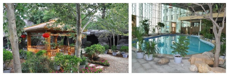 接纳天地之气,承收日月精华,头枕海浪潮汐,置身绿树红花,皇家园林野浴四季给人如此曼妙享受。野浴占地面积2000余平方米,设有18个温泉泡浴池,一个海水游泳池。其间绿树垂阴,鲜花争艳,山岩峻峭,拾级而上,登高休息茶座,可观海,可浏览月亮湖无限风光。