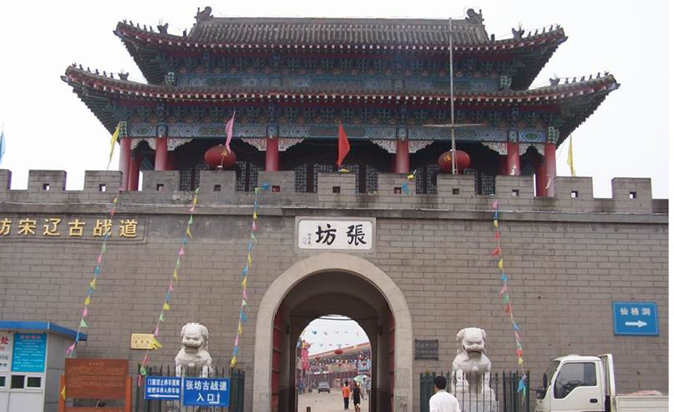 地图张坊是北京西南边陲古镇,距北京80公里,北依太行山,南临拒马河,风景秀丽,环境优美,是欣赏自然风光、观赏文物古迹的旅游胜地。古战道在古镇地下四通八达,迂回曲折,通四门城楼,通片上村任家坟,初步探测约为1500米,已发现和复修400多米。早在西晋时,大将刘琨、祖狄为抗拒北方胡人石勒的进犯,就在此重兵驻防,当时帐房林立,连绵数里,故当地百姓取名帐房,后去谐音,定名张坊。张坊古城镇楼最底层的洞口,便是通向地下战道。