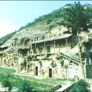 北石窟寺位于甘肃省庆阳市西南25公里处,蒲河和茹河交汇之东岸的覆锺山下,海拔1083米。因与平凉泾川南石窟寺同时代开凿,南北辉映,直线相距45公里,故而得名。北石窟寺肇造于北魏宣武帝永平二年,即公元509年,由泾州刺史奚康生主持创建。历经西魏、北周、隋、唐、宋、清各代相继增修,形成一处较大规模的石窟群。北石窟寺包括寺沟主窟群,及其北1.5公里处的楼底村一窟(简称北一号),其南1.5公里处的石道坡石窟,花鸨崖石窟,石崖东台石窟群等,南北延续3公里。现存窟龛296个,石雕造像2126身,碑碣8通,壁画96.7平方米,题记150方。主要精华石窟集中在寺沟主窟群。此处有283个窟龛,密布在高20米,南北长120米的黄砂岩崖体断面上。代表洞窟有北朝的165号、240号窟和盛唐时期的32、222、263号窟。雕造内容极其丰富,其千姿百态的石雕艺术,浓缩了陇东汉唐文化的精华,也是古代中外文化交流的结晶,在中国佛教石窟艺术史上占有一定的位置。1988年1月被国务院公布为全国重点文物保护单位,现为陇东著名的旅游胜地。165窟出北石窟寺的特级洞窟,位于寺沟主窟群的中部,是北魏永平二年泾州刺史奚康生主持开凿的"七佛窟"。窟门高5.90米,宽3米。门外两侧雕二身5.8米高的守门天王。洞窟平面为横长方形,覆斗形顶,高14米,宽21.7米,进深15.7米,正壁(东壁)及南北壁雕七尊8米高立佛和十身4米高胁待菩萨,西壁两侧雕二身5.8米高的交脚弥勒和3.05米高的骑象菩萨、三头四臂的阿修罗天。窟内四壁遍布千佛、飞天、"舍身饲虎"、"割肉贸鸽"等佛传及佛本生故事浮雕造像110多身。造像大多保存较完整,在全国北魏石窟同类题材中,此窟风格独特,最具典型性和代表性,具有很高的历史考古和艺术观赏价值。32、222、263号窟是唐代的代表洞窟,其造像生动逼真,富丽多姿。雕刻刀法娴熟,堪为艺术精品,令人叹为观止。