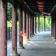 进入景区,映入眼帘的是大片青翠欲滴的竹林,作为“南竹北移”的试验基地,楼观台使游客在西北也能看到南方盛产的竹子。沿着台阶往上走,在山腰上有个道观,里面有老子说经台,是老子写《道德经》并向弟子传授的地方。再往上,到炼丹峰就算到达景区的最高峰了。