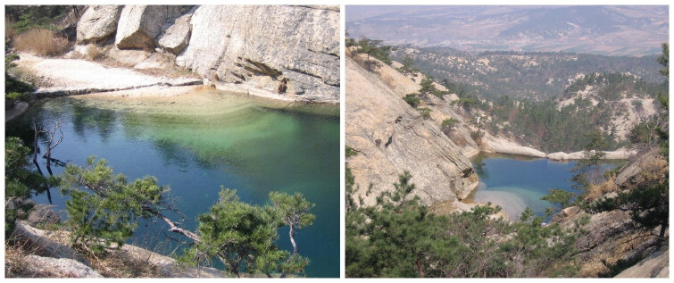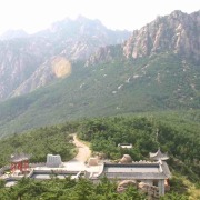 昆嵛山的主峰,海拔923米,山峰高耸,轩昂挺拔,雄伟奇峻,峥嵘高峭,大有触天之势。据传泰礴顶名称乃取泰山支脉而气势磅礴之意。登极顶,远眺三面碧海浩渺,半岛群峰耸翠,昆嵛美景尽收眼底,形成一种由抑到扬的节奏感和“一览众山小”的高旷气势。若遇云雾,昆嵛云海更为壮观,山中的白云蓊郁而起,“烟波汹涌”“万马奔腾”,巍峨云山,千柱翠峰悬浮于悠悠舒卷的白云之上,宛若虚无缥缈的仙山琼阁,蔚为壮观。还可观黄海、日出、山市等景观。
