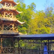 地图风景旅游区以5公里旅游公路和7公里人行旅游步道连接两大景区30多个景物景点以其特殊的生态环境和气候特点,形成了丰富的自然生态系统和景观类型。竹林位于云顶自然风景旅游区的南侧,远远望去,层次分明,疏密有致。漫步其中,仿佛与大自然融为一体。风景区景色秀丽,胜景迭出,区内配套服务设施完善,食有烧烤和快餐厅,住有“丛林小木屋”。一年四季,无论何时到此游玩,总会令人流连忘返。这里群山环抱,古树参天,空气清新,泉多水清,翠竹丛生,周围4800亩山岚至今保持着良好的生态环境,近千种动植物生机勃勃。尤其令人惊叹的是这里竟然生长着500余亩郁郁葱葱的竹子。据林业专家称,这片江北大的竹林,起源于何时已无从考究,举世罕见。
