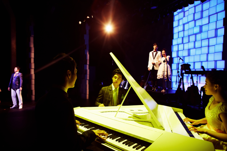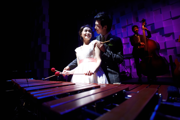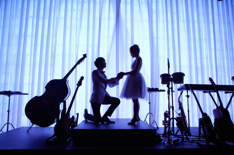 1.令人热血沸腾!活力四射的现场演奏《结婚快乐》最大的特点如其“音乐秀”之名,是一场动力十足、活力四射的现场演奏盛事!以钢琴、吉他、洋鼓为主,萨克斯、马林巴琴、低音提琴、glass harp(一种需注水进高脚杯调节音程的乐器)等23种乐器登场,展现出一个让人们大饱耳福的舞台。另外,6人齐奏的长吉他、3人共弹的圆形钢琴等一些《结婚快乐》原创的罕见乐器也值得瞩目!