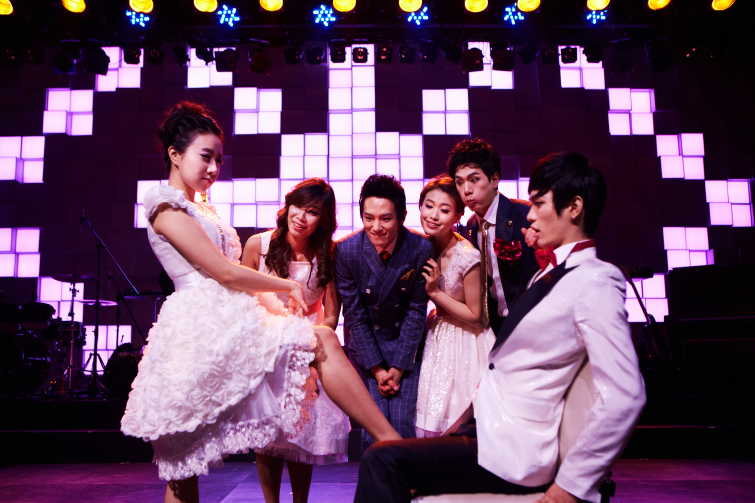 在步入剧场里的一刹那,您会感觉这里宛若一个真正的结婚礼堂。以白色为基调的大厅俨如婚礼大堂,处处用婚礼花球进行了装饰。从开演前20分钟起,饰演新郎、新娘、婚礼司仪角色的演员们会站在大厅迎接客人,如同向前来参加婚礼的人们行礼问好似的。观众们也会在不知不觉间感觉像是被邀请前来参加一对新人的婚礼,不禁心生祝福之情。