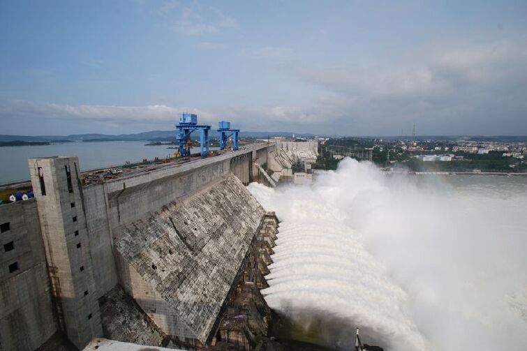 丹江口大坝(丹江口水力发电厂),位于湖北省丹江口市城区,在汉江与其支流—丹江汇合口下游800米处。工程水工建筑物由混凝土坝、电站厂房、升船机提升系统及上游30公里的两座引水渠道组成。它是新中国成立后我国自行设计、自行建造和自行管理的以防洪为主,兼有发电、灌溉、航运、养殖等综合利用的大型水利枢纽工程。它不仅是根治汉江、开发汉江的关键工程,而且也是南水北调中线工程最佳的水源工程。挡水建筑物丹江口大坝总长2.5公里,工程最大坝高97米,坝顶高程162米,内装6台发电机组,装机容量90万千瓦,多年平均发电量40亿度。