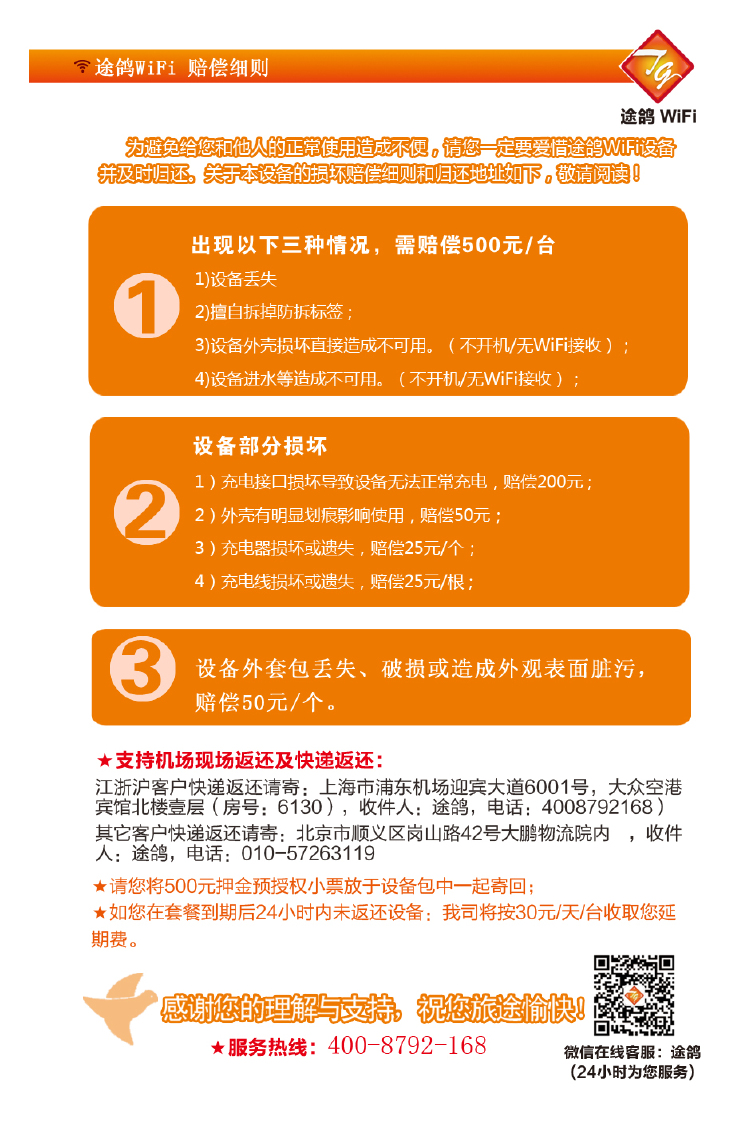 快递返还请寄:上海市浦东机场迎宾大道6001号,大众空港宾馆北楼壹层(房号:6130),收件人:途鸽,电话:4008792168)