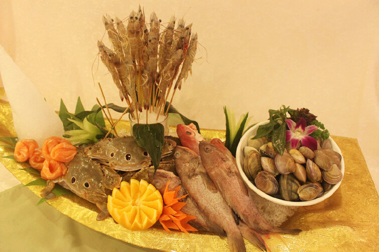 西班牙海鲜炒饭、泰国香米饭、胜意金牌炒面、鲜虾白菜饺、五谷杂粮糕、白灼大明虾、姜葱花蟹、豆酱闷海鱼、马达加斯烩菜、凌鱼油麦菜 (注根据出品每天更换品种)