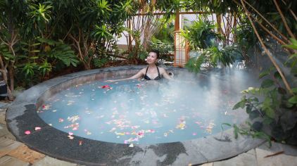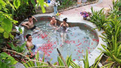 盐巴浴---埋盐疗法能深层清洁肌肤,祛除多余油脂与老化角质层,促进皮肤新陈代谢令肌肤柔滑白皙,除了美肤养颜,埋盐疗法对风湿关节炎患者,怯冷病症状者也有一定的缓解功效。盐疗的出现令大量现代都市人趋之若鹜般争相体验,对于追求健康的人们来说,盐疗已上升到前所未有的高度,近在咫尺的你想要消除亚健康就赶快抓紧机会行动吧!中药浴: 置身于药浴池中,通过热透入法,使药剂中有益成分充分透入人体,起到养生益体的作用。花草浴: 利用温泉水将花瓣中的花香全部浸泡出来,沐浴后,通体清香,周身舒畅,意犹未尽之感。椰奶浴: 椰奶浴就是将椰子的鲜轧汁融入温泉水中,滋养肌肤、杀菌止痒、促进肌肤表层新陈代谢。鱼 疗: 体长不到2厘米的小鱼由于特殊的生活习性,专门啄食人们身上的死去皮质和一些只有在显微镜下看的到细菌。这种小鱼能在水温高达 43 摄氏度的温泉水里畅游,最奇特的是当人进入浴池中,小鱼便将人团团围住,专门啄食人体上死去的皮质和一些只有在显微镜下才能看到的细菌,不但可以刺激表皮神经,促进血液循环,还能起到畅通毛孔的作用。使肌肤更好的吸收温泉精华,对人体健康极有好处!睡热炕: 感受了温泉后不妨去去睡睡“热炕”。热炕乃北方的产物,在热带城市享受热炕应该会使您增添一种别样的人生感受。