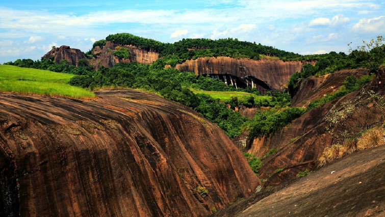 飞天山内山石林立,山中有充满传奇色彩的千年悬棺,徐霞客曾称赞这里“江口诸峰,俱石崖盘立,无一山不奇,无寸土不丽”,并雕刻了“寸土佳丽”几个字留存至今。
