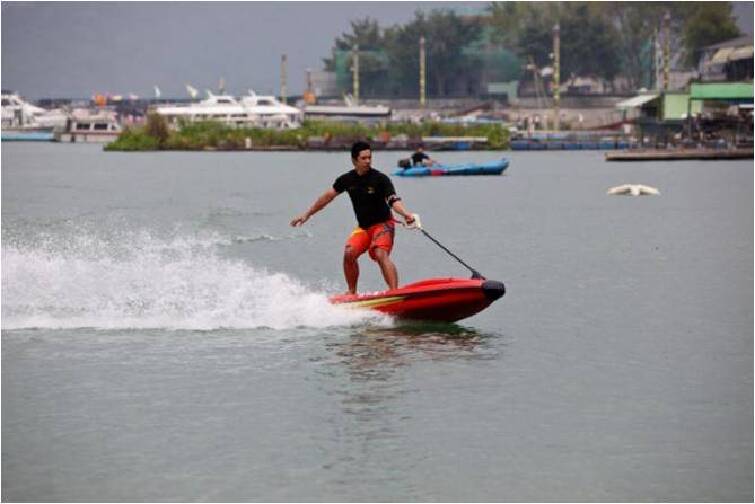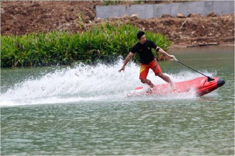 (冲浪板)穿上潜水服,系上保护装置,让我们出发吧! 手上的速度控制器让你随时掌控冲浪板的速度,10分钟时间让您自由搏击风浪,看浪花飞舞如梦如幻。