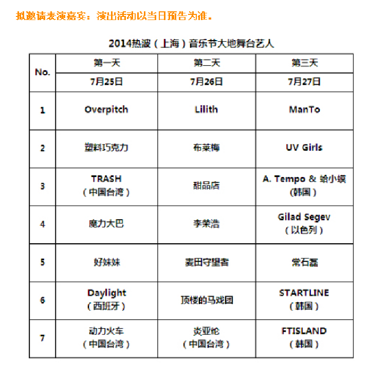 这次的热波音乐节请来了小清新二人组‘好妹妹’在浪漫的沙滩上为我们浪一把音乐的漫,这个能翻唱出《青城山下白素贞》的骚情组合不知道在金山为我们带来什 么样的歌曲,但是大合唱是已经可以遇见的,所有小清新们可以回家准备了。本帮菜的代表顶楼的马戏团也会用他们戏虐的演唱和吴侬软语的笑骂让你们领略别样的 浪漫。至于那个遥远又熟悉的名字——麦田守望者,我相信,所有的摇滚青年中年都不能错过,他们是理想,是坚持,是永远的守望者。