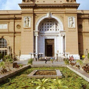 孟菲斯博物馆外是一片小花园,可以看到一些残破的石雕,其中一座代表阿迈诺菲斯二世(Amenphis II)的狮身人面像高4米多,由一整块80吨重的岩石雕成。