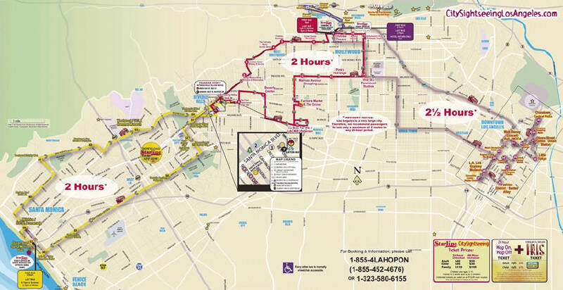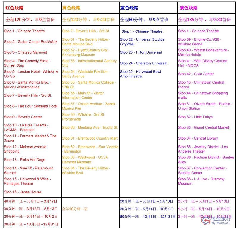 洛杉矶好莱坞旅游观光巴士线路如下: