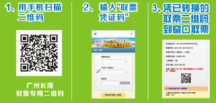 备注:广州长隆景区内各园区售票处均设置免费WIFI可供转换“取票二维码”使用,WIFI名称:chimelong-ticket