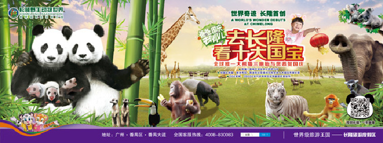 广州长隆旅游度假区旗下有长隆野生动物园,长隆欢乐世界,长隆国际大马戏,长隆水上乐园,长隆鳄鱼公园五大主题景区。2013年《爸爸去哪儿》大电影开播之后,长隆更是一举成为全国最出名的休闲度假乐园。吸引了无数亲子、家庭前来广州游玩。