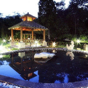温泉会馆背山面海,采东方传统太极阴阳理论,设室内、外两个区域,汇聚了日本及中国风格的特色温泉池,将温泉的精华悉数收纳,每日换汤一次,每汤各具功效。让您在与自然美景亲密接触中,达到休闲、美容、养生、护肤的功效。另外风靡全球的韩国汗蒸沐、玫瑰浴等特色干、湿蒸桑拿设施令人通体舒畅,风格迥异的温泉文化,在这里您可一次尽享。馆内特设国内领先的康乐设施等配套服务,并备有五星级温泉客房供您怡情休憩,更悉心备妥中高档营养配餐,供您优雅尊...