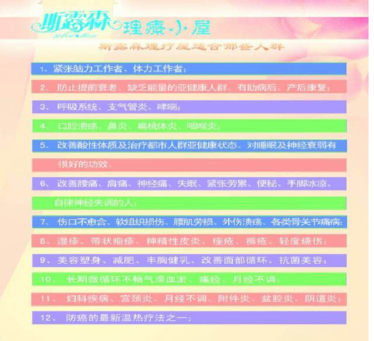 斯露森恒石汗蒸理疗馆是一种新式独有的家庭式理疗馆,透过恒石波的作用能深层解决您各种亚健康症状,将您体内的酸性物质及毒素清除体外。