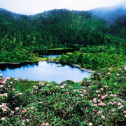 九十九龙潭三潭互依,所以它又被称为“三眼潭”。潭水来自春天的融雪和夏季的降雨,清澈冰冷,水质优良。湖水溢出后,汇成小溪,形成瀑布,集为小河,穿越原始森林,终奔向金沙江、澜沧江。这些冰蚀湖泊,形状各异,湖水幽深九十九龙潭神秘,在阳光和花木的映照下呈现出蓝、橙、黄、绿的绚丽色彩。其中较大的是黄龙潭,深不可测,潭中有棵红珊瑚树露出水面,不时泛起红波。九十九龙潭也是欣赏原始生态景观,龙潭的神秘美和杜鹃花林的奇艳的好地点。冬天的九十九龙潭遍布着冰棱,是一个天然的冰雕世界,非常美丽。