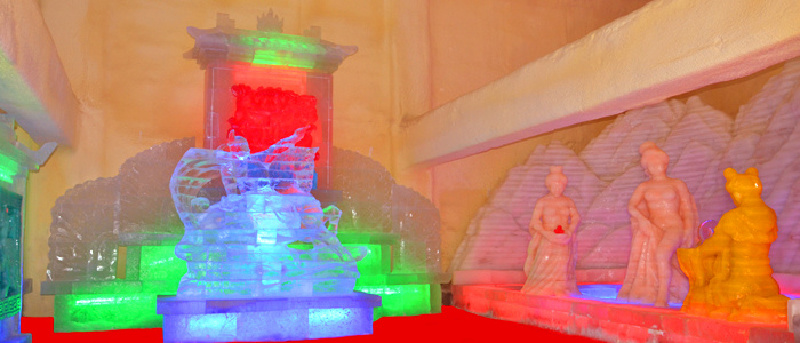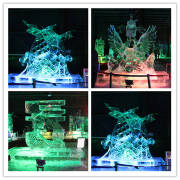 A秦唐文化在《秦唐文化》展区您将看到用冰雕刻而成钟楼、长城、兵马俑、唐侍女、甚至会看到冰雕贵妃出浴,您将在冰雕中重新回到恢宏的秦唐盛世,本展区中的冰雕大佛高达7米、直径20米,站在冰雕前仰视佛祖,灯光辉映下佛祖熠熠生辉,佛光普照,佑护每一位来宾。冰雕兵马俑不同与秦俑坑内的陶制俑阵,它呈现给我们的兵马俑是晶莹剔透水晶般的感觉,这也是冰与火两种不同风格的作品。