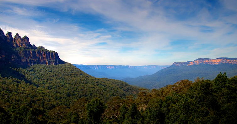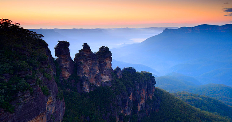 • 蓝山海拔一千多公里,山上遍布着澳大利亚的国树——桉树,桉树挥发的一种桉树油,形成薄雾,在阳光的折射下,形成了淡淡的蓝色,宛如仙境一般,被英国女皇伊丽莎白称为“世界上最美的地方”。