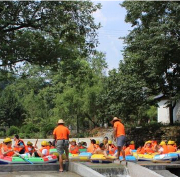 巍巍青山两岸走,小小皮筏水中游。漂流全程2.2公里,沿途风景秀丽、景色怡人,水流时缓时急,水质清晰透亮,河岸两边多数地段都有大树掩映、青翠欲滴,如沐清凉,由于落差不是很大,尤其适合老人小孩。在工作闲暇之余,可以带上家人,来体验一下欢乐全家亲子游;也可以邀上好友,纵情欢享漂流的畅快……