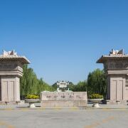 当你走进景区,首先看到的是大型铜铸雕像,在往北走,有一块高大的石碑,石碑上用蒙汉两种文字镌刻着诗作《谒昭君墓》:“昭君自有千秋在,胡汉和亲识见高”。石碑后方两侧,七块各代石碑历历在目。你可以沿着石阶上到墓冢的顶部,在这里可以可看到连绵不断的阴山横贯东西,也可以欣赏到呼和浩特市全景。