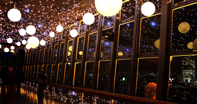 ·温馨灯彩(Tokyo Warm Light):以“温暖”为主题,大眺望厅亮起温馨的灯彩,设在灯彩一角的“Tokyo Warm Heart”对一家人或者恋人而言都是绝佳的摄影景点。每年4月-5月左右在大眺望厅1楼举办。