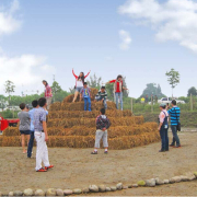 地图古藤·疯狂农场位于成都市新津县兴义镇,毗邻生态羊马河河畔,成新蒲快速通道和成都第二绕城高速穿插而过,距成都市区24公里,距双流国际机场仅16公里,交通十分便利。疯狂农场占地面积120亩,先期投入120万打造,是西南地区乃至全国唯一一家以欧美农场草垛设施为主,集观赏、竞技、游玩、科普、餐饮、商业为一体的多功能综合性大型游乐园项目。