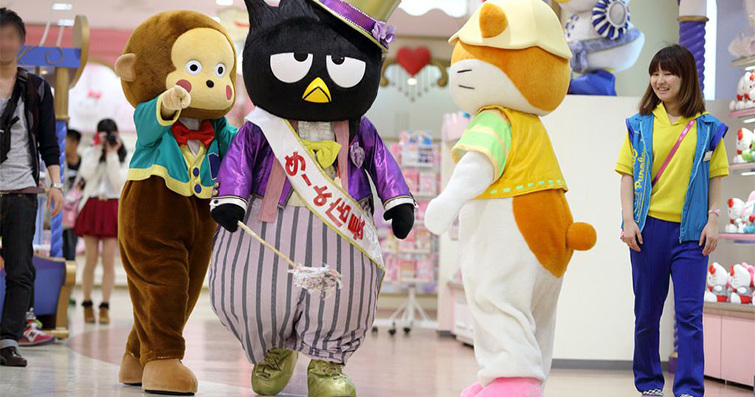 卡通人物Hello Kitty、Pochacco、Keroppi不时在你左右出现,与你合影。