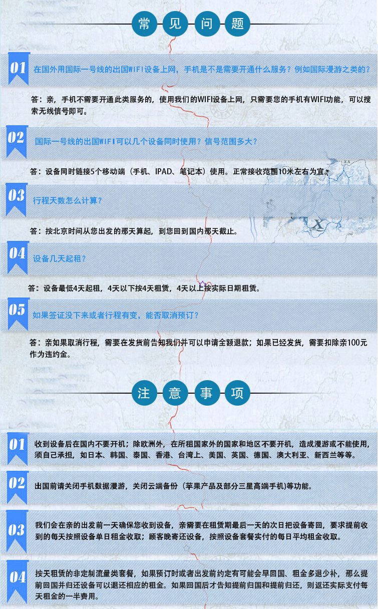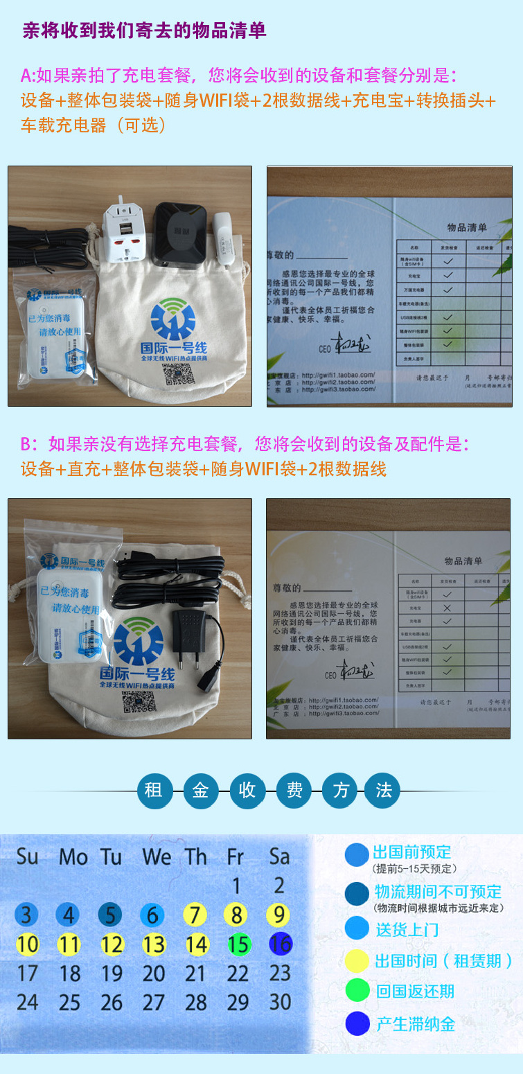 出游日请选择出国日期。在线预订成功后,设备最晚将在您出国前1日寄到。如需异地乘飞机出国或有特殊需求,请致电4007-999-999。设备数量有限,如需预订,请尽早。