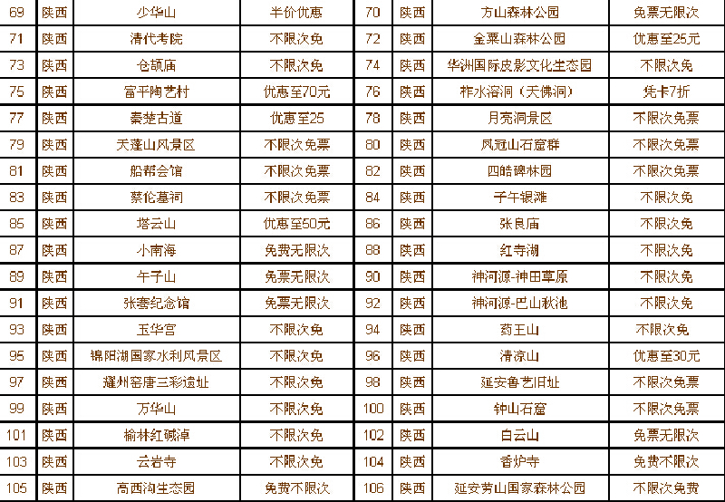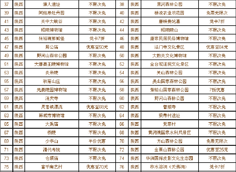 2015年陕西旅游年票