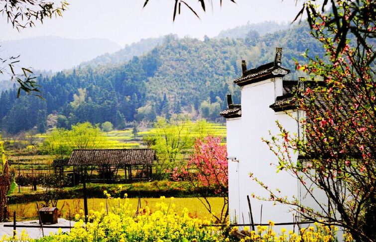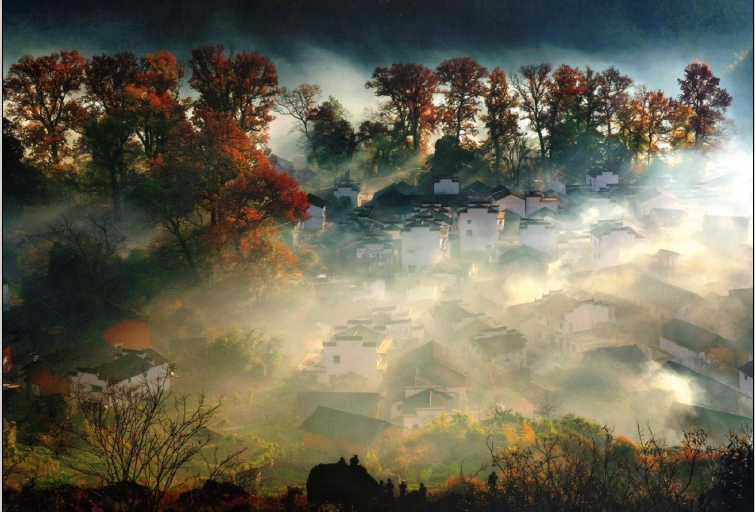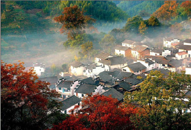 婺源山明水秀,松竹连绵,飞檐翘角的古民居蜿蜒于青山绿水,或依山,隐现于古树青林之间;或傍水,倒映于溪池清泉之上;与层层梯田、缭绕云雾相映成趣,如诗如画。四季景色各呈千秋,尤其是春秋两季,漫山遍野的映山红和满山的红枫叶犹如一簇簇火苗争奇斗艳。置身于这样的景色之中,让你感觉到心旷神怡和留连忘返。