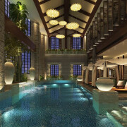 原乡奥地利温泉会所建筑面积5,000平米,集温泉体验、水疗养生、餐饮娱乐,农业观光等多项功能于一体。
