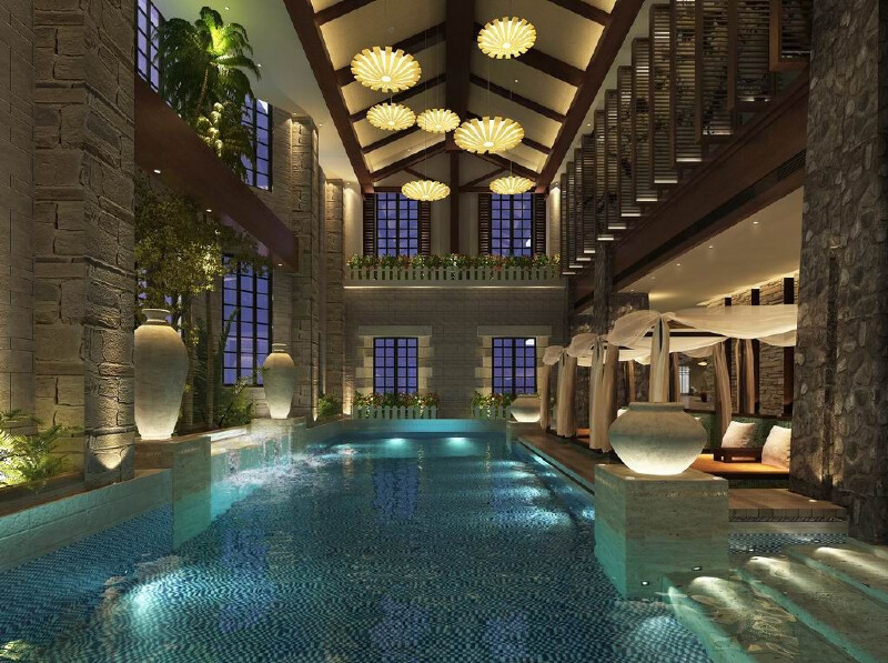 会所建筑采用欧式风格,由国际设计师悉心打造,优雅的环境,为宾客呈现热带风情式美感的同时,享受温泉的乐趣。