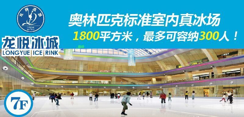 龙悦冰城,冰面面积1800平方米,是具有奥运竞赛标准的真冰场,最多可同时容纳300人。