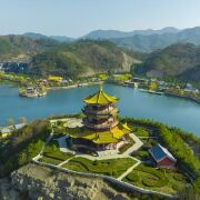 海岳开襟建于乾隆时期,坐落在一个圆形岛屿上,秋高气爽时节,帝后经常来岛上登高远望。“远望如海市蜃楼,近睹如登仙境”这句诗描绘的就是圆明园中的这个仙境境地——海岳开襟。新长春园中的海岳开襟四面临水,整组建筑雍容端庄,金碧辉煌,是游客的观景佳处。