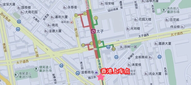 香港上车点:九龙旺角鸦兰街地下2号铺(太子地铁站C1出口步行约100米、或旺角地铁口A1出口步行约300米)