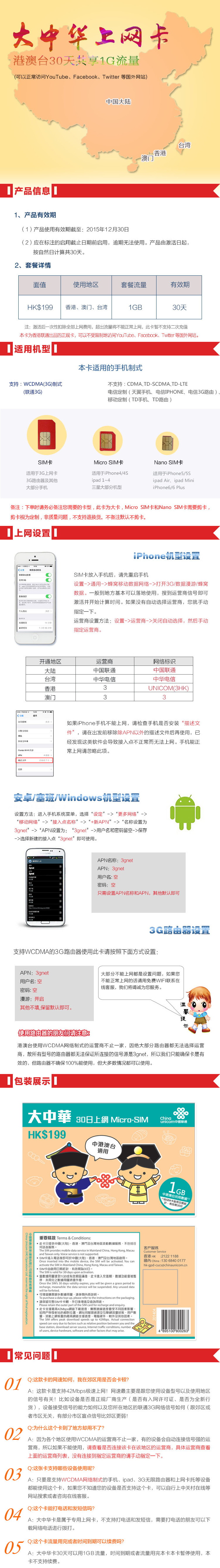适用手机:WCDMA(国内联通3G手机可用此卡)