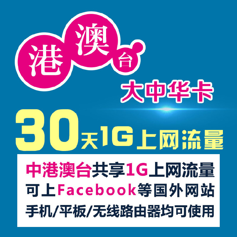 中国香港澳门台湾大陆通用wifi上网卡(大中华卡)