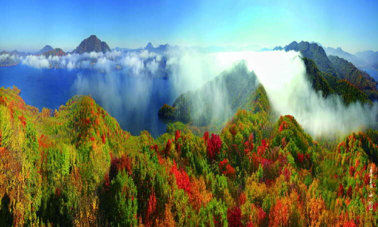 哈尔滨凤凰山国家森林公园山势横亘,林海浩瀚、大河奔腾、花海迤逦,好一派北国风光。