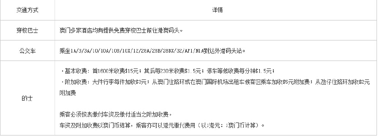 地址:澳门外港客运码头抵达大厅旅游询问处