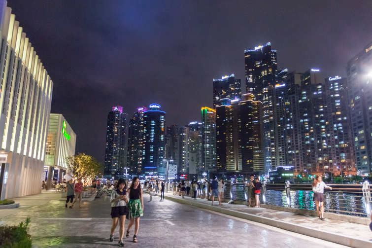 高层顶级公寓以及各种美食店穿插在一起的釜山海云台特有的奢华风景。所以不仅是游客,就连对于釜山居民们来说也很有人气。