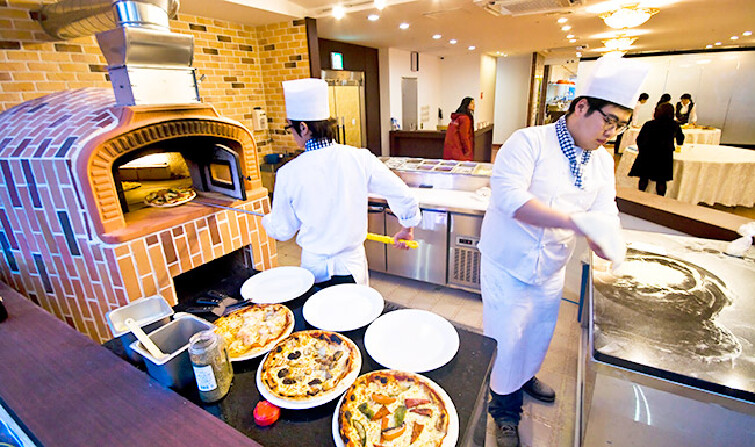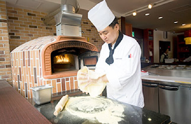★亮点1:在红砖火炉上直接烘烤的高级披萨,和面、制作、烘烤全过程公开!