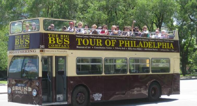 在环绕费城的20个站点的任一站点登上露天的双层巴士开始您的随上随下观光游。凭巴士观光票您可乘坐行程1.5小时的循环观光巴士,该车会在费城著名景点、酒店、购物和娱乐中心停靠。