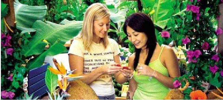 购买我们的新鲜热带水果和冰激凌,饮料和美味午餐。外加我们著名的全天然护肤品和美味产品。